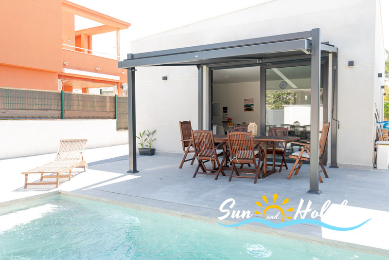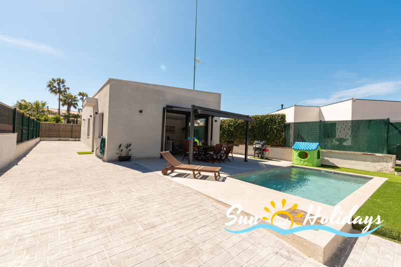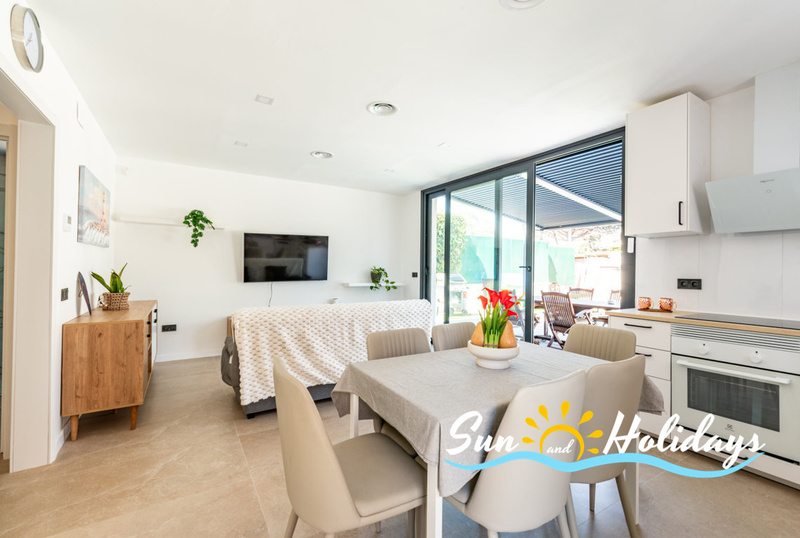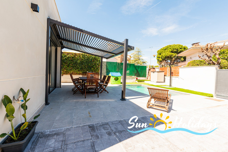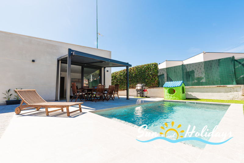 Villa in Calafell with private swimmingpool and air conditioning located in a nice neighborhood near the town center and restaurants area. 3 bedrooms, 2 bathrooms, parking, terrace , barbecue and wifi.